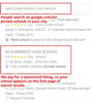 We can place adverts of your school on the pages of millions of websites, shown to people who live in a particular area. This is a great way to promote your school, and increase the number of students applying for admission.